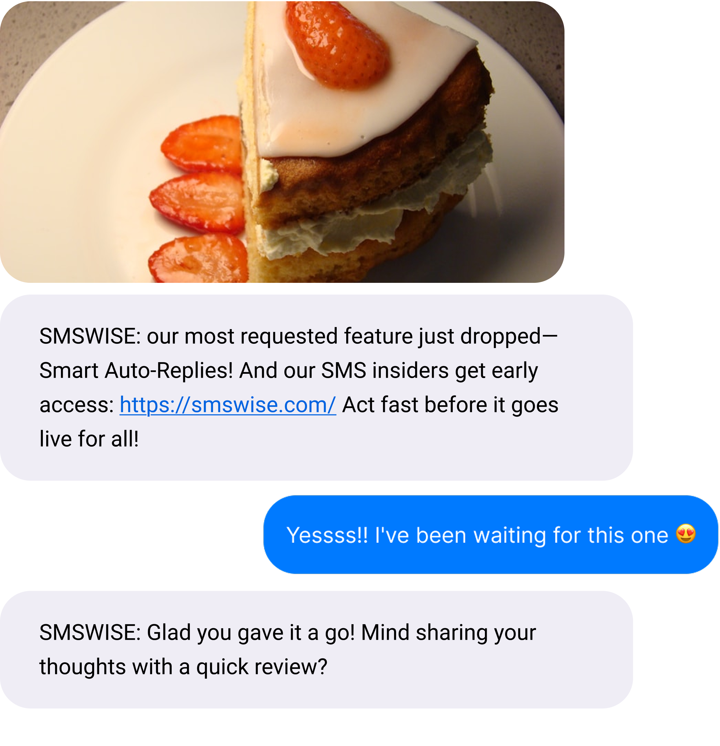 SMS Wise empowers you to build meaningful relationships at every stage of the customer journey through powerful SMS marketing tools and real-time data collection.